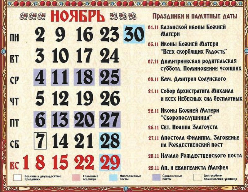14 листопада – апостола Пилипа, заговини на Різдвяний піст. 15 листопада – початок Різдвяного посту, мучеників і сповідників Гурія, Самона і …