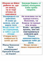 Пропоную Вам зробити для учнів маленьку мотивацію на 1 вересня. В документі представлено 26 мотиваційних фраз. Спробуйте посприяти успіху.