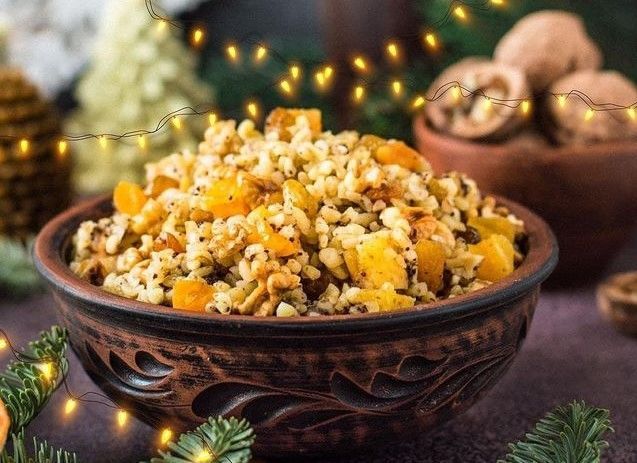 Рецепт куті: рис сирий – 1 склянка мак – 1 склянка родзинки – 1 склянка горіхи – 1 склянка курага – 1 склянка мед – 3.5 ст. л.